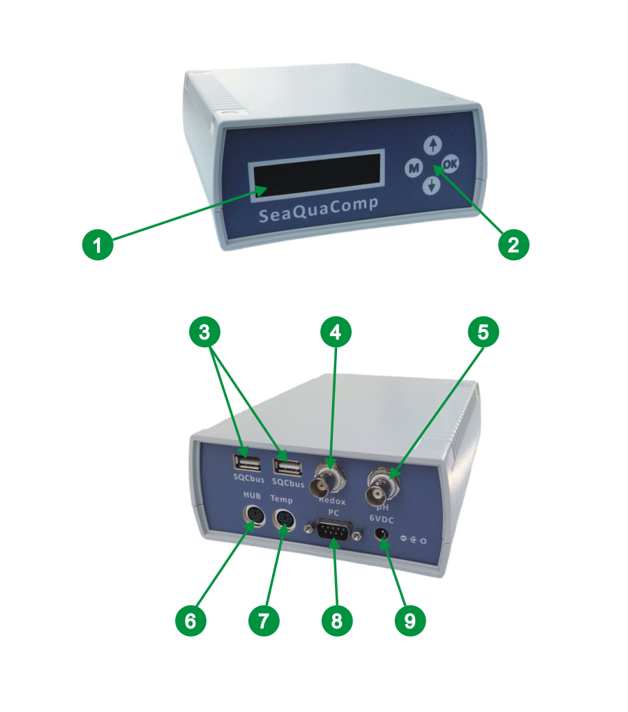 Zewnętrzne moduły umożliwiają rozszerzenie funkcjonalności komputera SeaQuaComp bez konieczności jego modyfikacji, najczęściej wystarczy wgrać samodzielnie nowy firmware. W obecnej wersji oprogramowania, komputer SeaQuaComp pozwala na podłączenie 2 sond pH (druga sonda poprzez moduł zewnętrzny), 2 sond Redox (druga sonda poprzez moduł zewnętrzny), 2 sond Temperatury (wymagany moduł 2xTemp), sondy do pomiaru konduktancji wody morskiej.