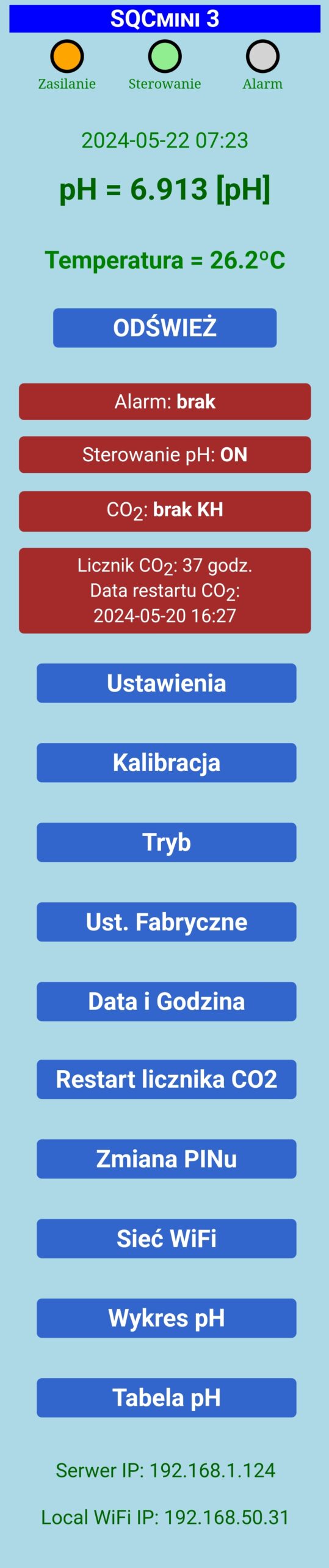 Serwer IP: 192.168.1.124 – stały adres serwera wbudowanego w kontroler pH.