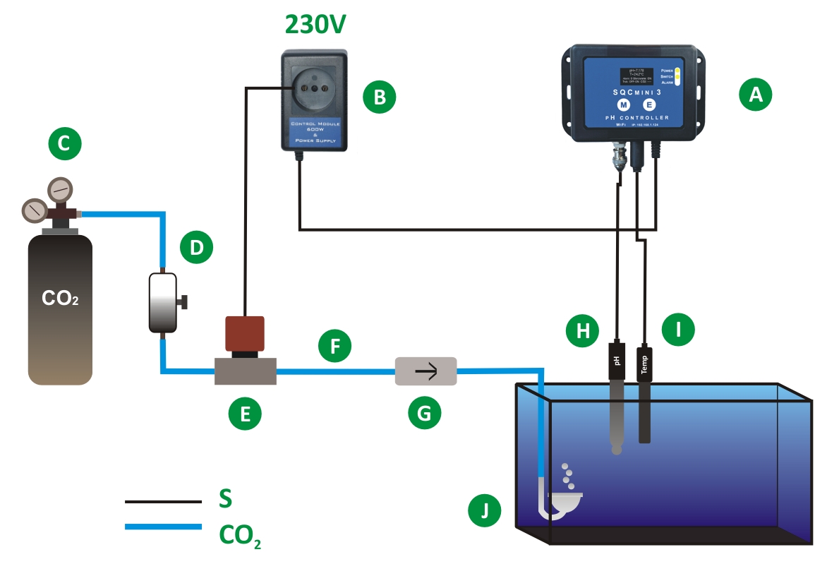• Dwa tryby pracy (LOW/HIGH) umożliwiające kontrolę przy obniżaniu oraz podwyższaniu pH (np. nawożenie roslin w akwarium słodkowodnym, czy dozowanie CO2 do kalkreaktora w akwarium morskim).