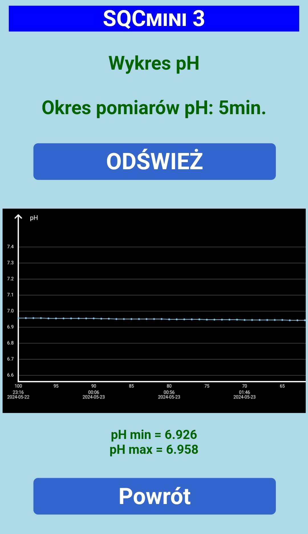 pH = 6.913 [pH]  –  aktualny pomiar pH od ostatniego odświeżenia.